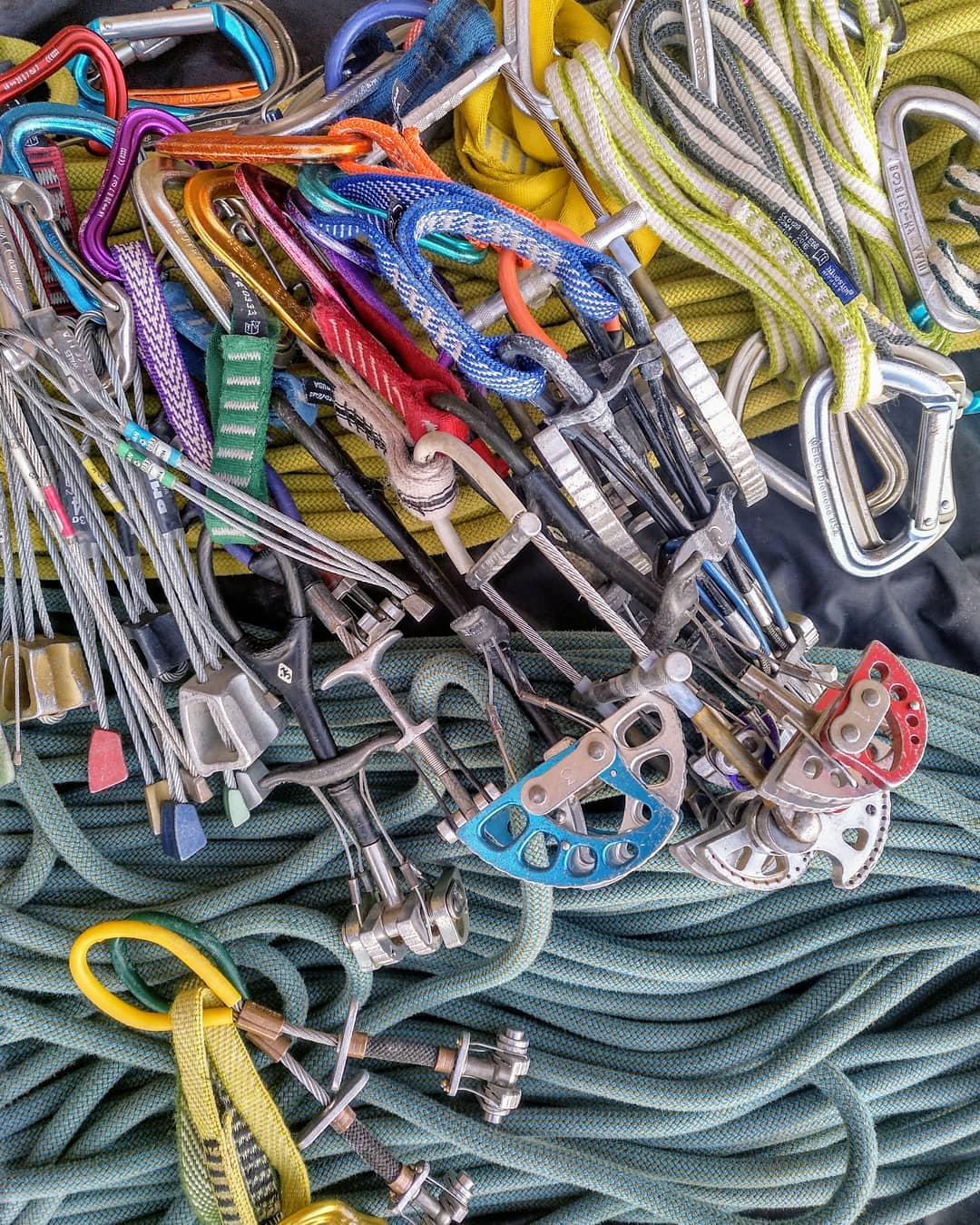 - Col·locació de proteccions flotants (friends, tascons, cintes)