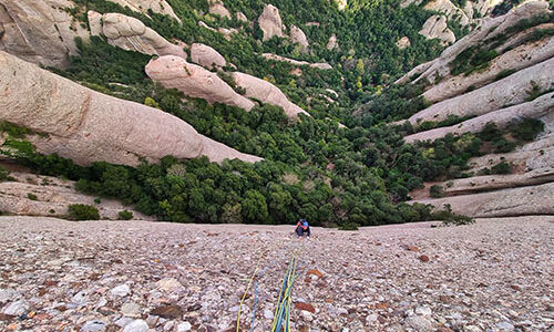 Cursos de escalada para todas las edades y niveles. Ofrecemos cursos de iniciación a la escalada en roca, de escalada tradicional, de escalada en vía larga, de técnicas de auto-rescate y seguridad y gestión del miedo. Donde aprenderás a ser autónomo para poder disfrutar todavía más.